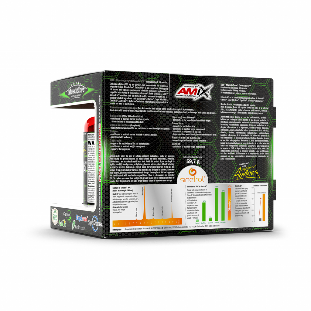 A MuscleCore® Detonatrol™ csak a legjobb minőségű, maximális szilárdságú és alaposan tanulmányozott összetevőket egyesíti, mint a Sinetrol®, Clarinol®, Super CitriMax®, AstraGin™, BioPerine® és sok más hatékony vegyület egy egyedi és könnyen használható formulában.