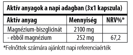 Összetevők: magnézium-biszglicinát, kapszulahéj (zselatin, víz)